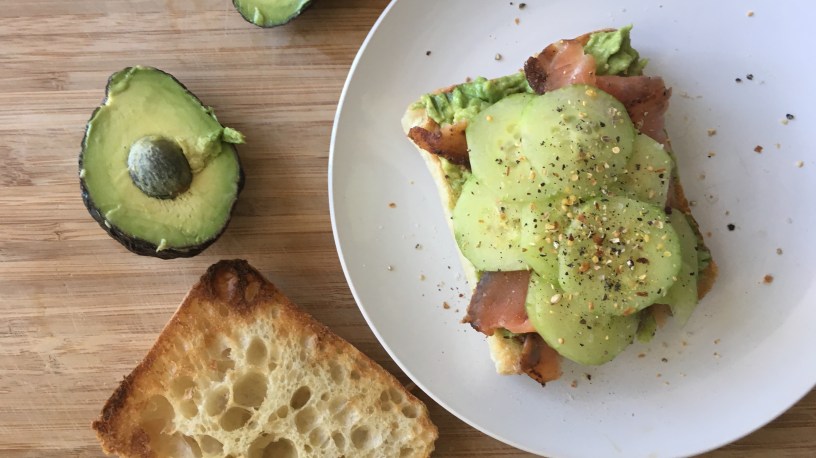 This avocado, cucumber, and smoked salmon tartine is probably one of my favorites and one of the easiest by far to make. Give it a try. 😉